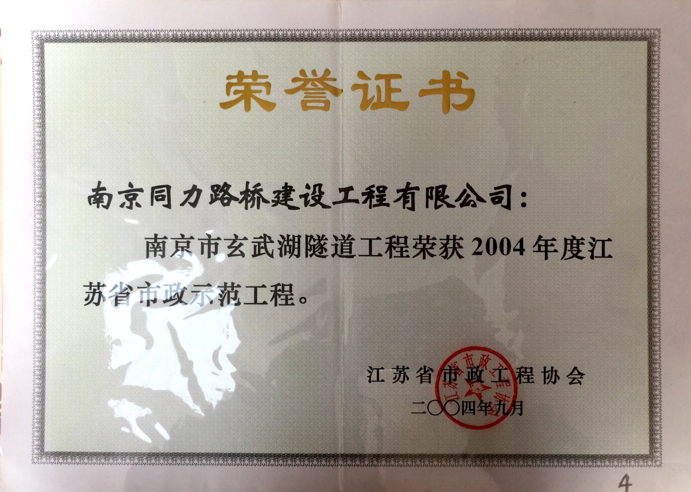 玄武湖隧道工程被評為“2004年度江蘇省...