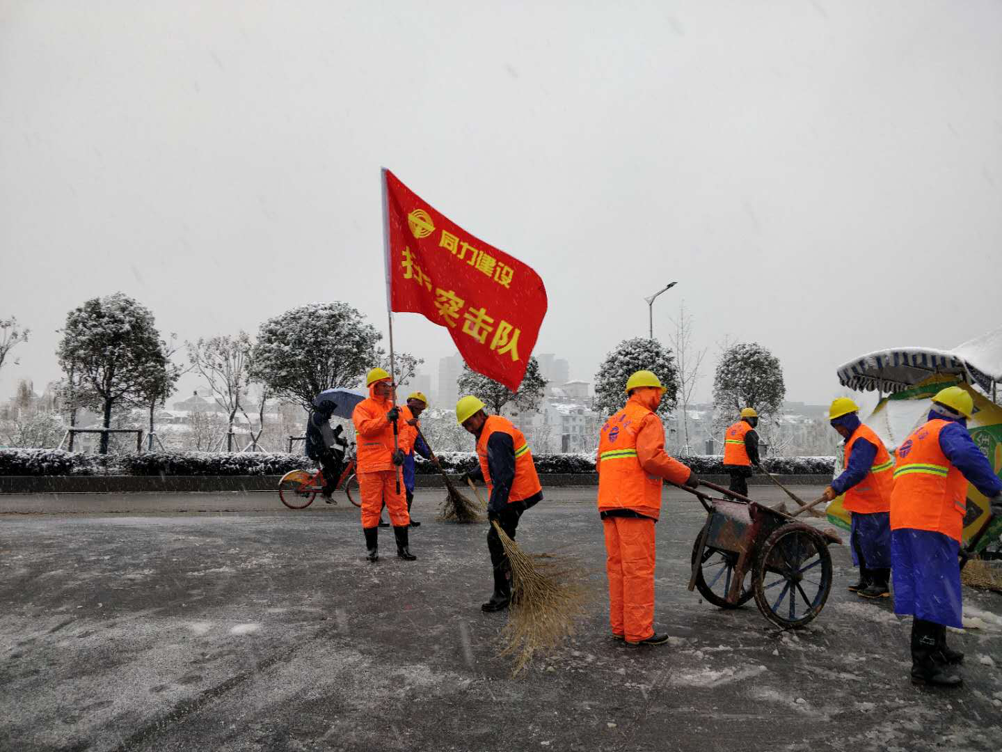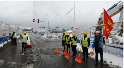 龍蟠中路項目部第一時(shí)間啟動(dòng)掃雪應急預案,要求全體管理人員停止休假返崗,積極組織并參與掃雪除冰、保障群眾安全暢通出行工作。