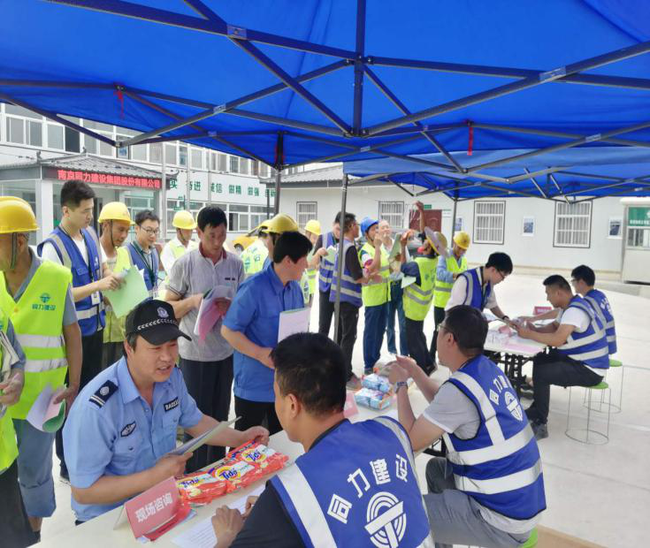 南京同力建設集團股份有限公司南京地鐵5號線(xiàn)土建施工TA07-2標項目部舉辦以 “防風(fēng)險、除隱患、遏事故”為主題的2019年“安全生產(chǎn)月”宣傳咨詢(xún)日活動(dòng),在全項目部唱響“安全生產(chǎn)”的主旋律,牢固樹(shù)立“安全第一、預防為主、綜合治理”的安全生產(chǎn)方針。