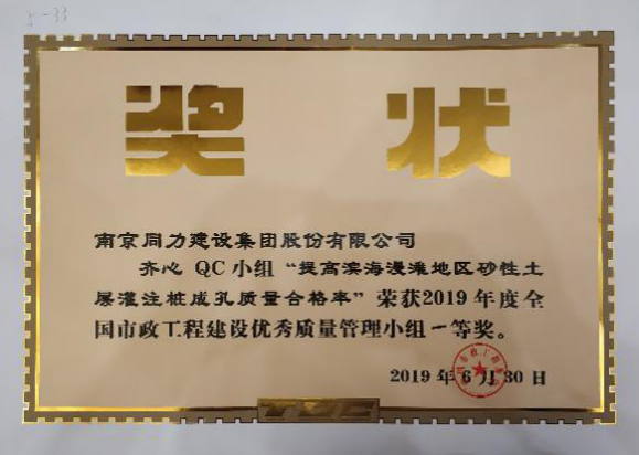 本次發(fā)布會(huì )上,同力建設參賽的兩項QC成果均來(lái)自項目施工一線(xiàn),成果質(zhì)量水平較高,經(jīng)過(guò)激烈角逐,同力人QC小組的《降低風(fēng)化巖層三重管高壓旋噴樁水泥損耗率》和齊心QC小組的《提高濱海漫灘地區砂性土層灌注樁成孔一次驗收合格率》均榮獲一等獎,同力建設憑借多年來(lái)在QC小組活動(dòng)中的突出成績(jì)和表現,再次榮獲“2019年度全國市政工程建設QC小組活動(dòng)優(yōu)秀企業(yè)”稱(chēng)號,徐慶平獲得“2019年度全國市政工程建設QC小組活動(dòng)優(yōu)秀推進(jìn)者”,此次再獲大獎是對同力建設多年來(lái)QC小組活動(dòng)成績(jì)的一種肯定,更激勵同力人繼續努力開(kāi)展QC小組活動(dòng)。