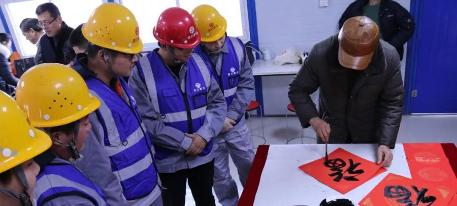 在與項目管理人員以及民工代表深入交流后,民盟市委領(lǐng)導向在場(chǎng)的工作人員送上新春的祝福,接著(zhù)來(lái)自南京民盟書(shū)畫(huà)院的書(shū)法家們現場(chǎng)書(shū)寫(xiě)春聯(lián)以及福字,屋里屋外洋溢著(zhù)喜悅的氣息,慰問(wèn)活動(dòng)在南京民盟歌舞團藝術(shù)家的歌聲中走向高潮。