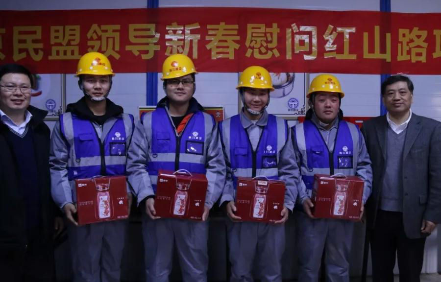 1月14日下午,王汝成副主席一行頂著(zhù)寒風(fēng)先后前往紅山路-和燕路快速化改造SG1標施工現場(chǎng)以及項目部,看望慰問(wèn)奮戰中的一線(xiàn)職工,為他們送上節日禮品,同時(shí)南京民盟書(shū)畫(huà)院的書(shū)法家們也當場(chǎng)為大家書(shū)寫(xiě)福字與春聯(lián),送上第一縷新春的問(wèn)候。南京民盟歌舞團的藝術(shù)家也在現場(chǎng)用歌聲送上新春祝福。民盟市委領(lǐng)導詳細了解了紅山路項目管理與施工人員的工作生活、防寒保暖措施、安全生產(chǎn)等情況,感謝他們戰嚴冬、斗寒風(fēng)、保生產(chǎn)的奉獻和付出,并叮囑大家要加強寒冷情況下勞動(dòng)保護工作,注意勞逸結合,確保身體健康和安全,讓廣大一線(xiàn)員工切身感受到了民盟市委領(lǐng)導的關(guān)愛(ài)。