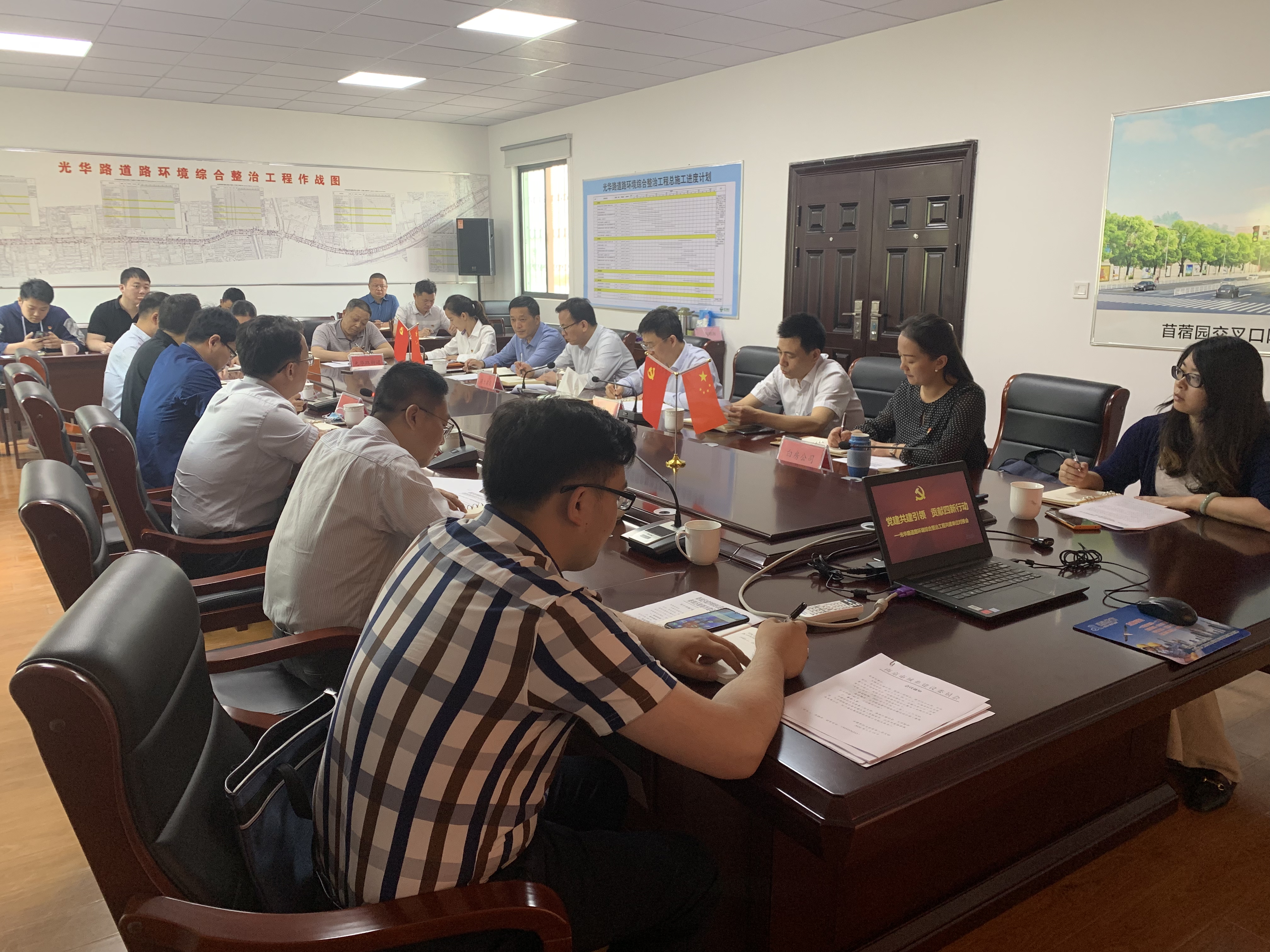秦淮區建設局蔡鵬程副局長(cháng),在匯報中提到,希望能夠聯(lián)合同力建設成立光華路道路環(huán)境綜合整治工程“黨建+項目”,串起組織紐帶、發(fā)揮組織優(yōu)勢。整合資源、優(yōu)勢互補,強化黨建引領(lǐng),提速工程建設,提升項目品質(zhì),打造標桿,爭創(chuàng )省優(yōu),確保廉潔,群眾滿(mǎn)意。
