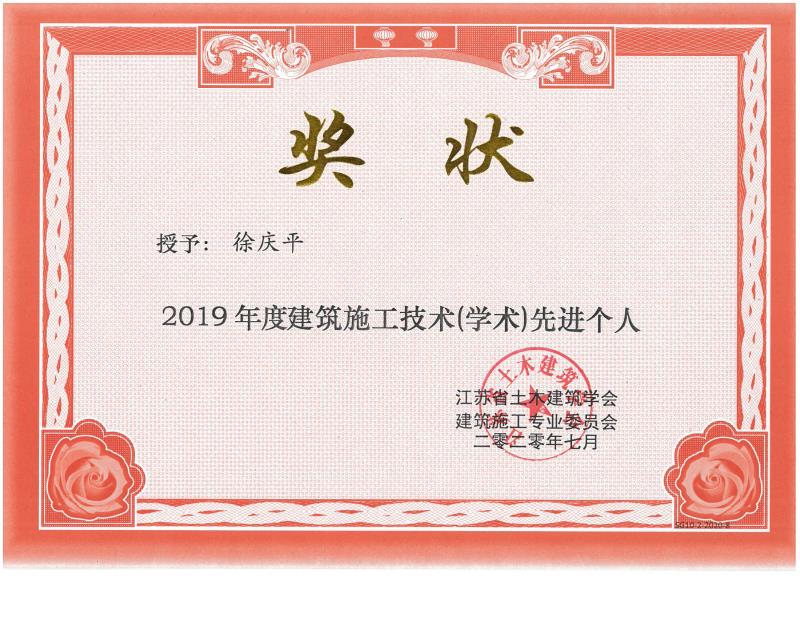 為全國市政工程建設QC小組活動(dòng)優(yōu)秀推進(jìn)者、江蘇省建設優(yōu)秀科技成果二等獎省級建設科技工作先進(jìn)個(gè)人。