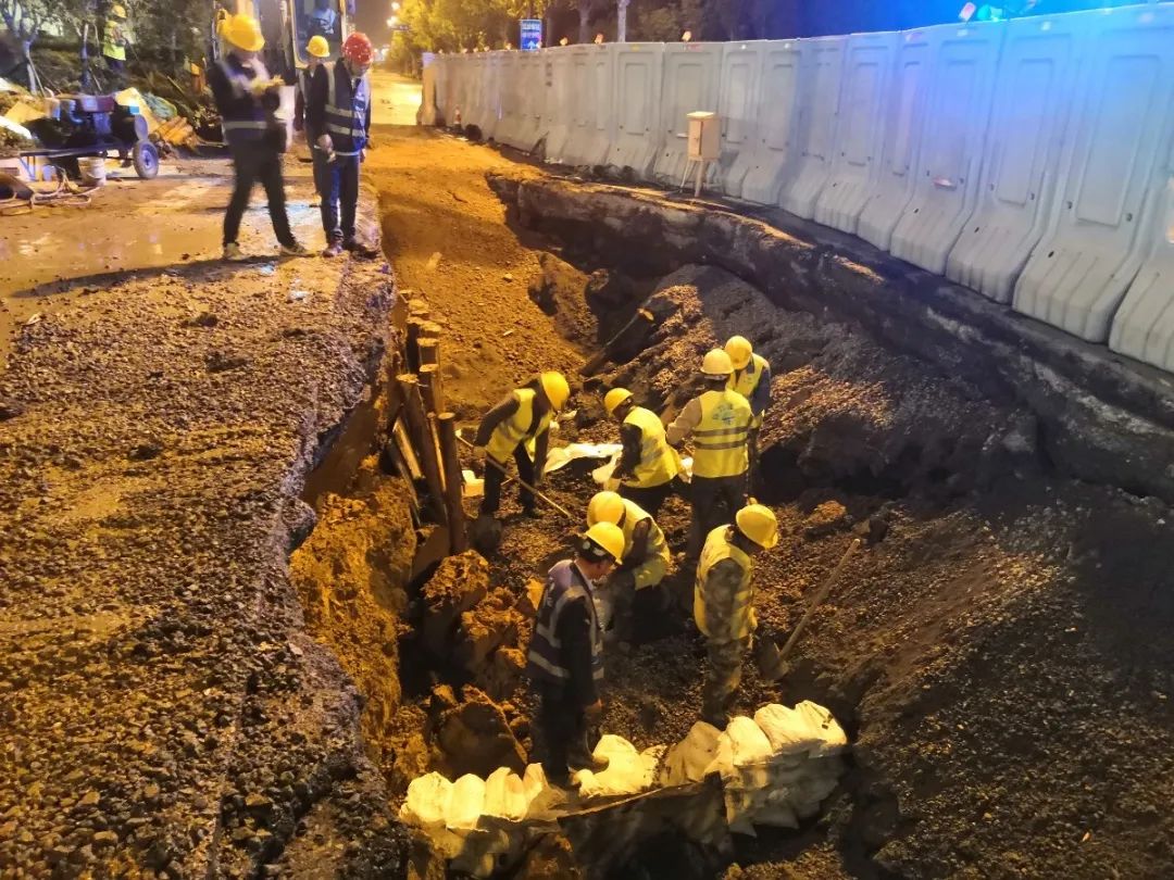4月28日下午,同力建設組織搶險救援隊伍抵達老排水管道破損現場(chǎng),立即對現場(chǎng)進(jìn)行了臨時(shí)回填,并于29日凌晨1點(diǎn)完成路面瀝青攤鋪,恢復道路通行。