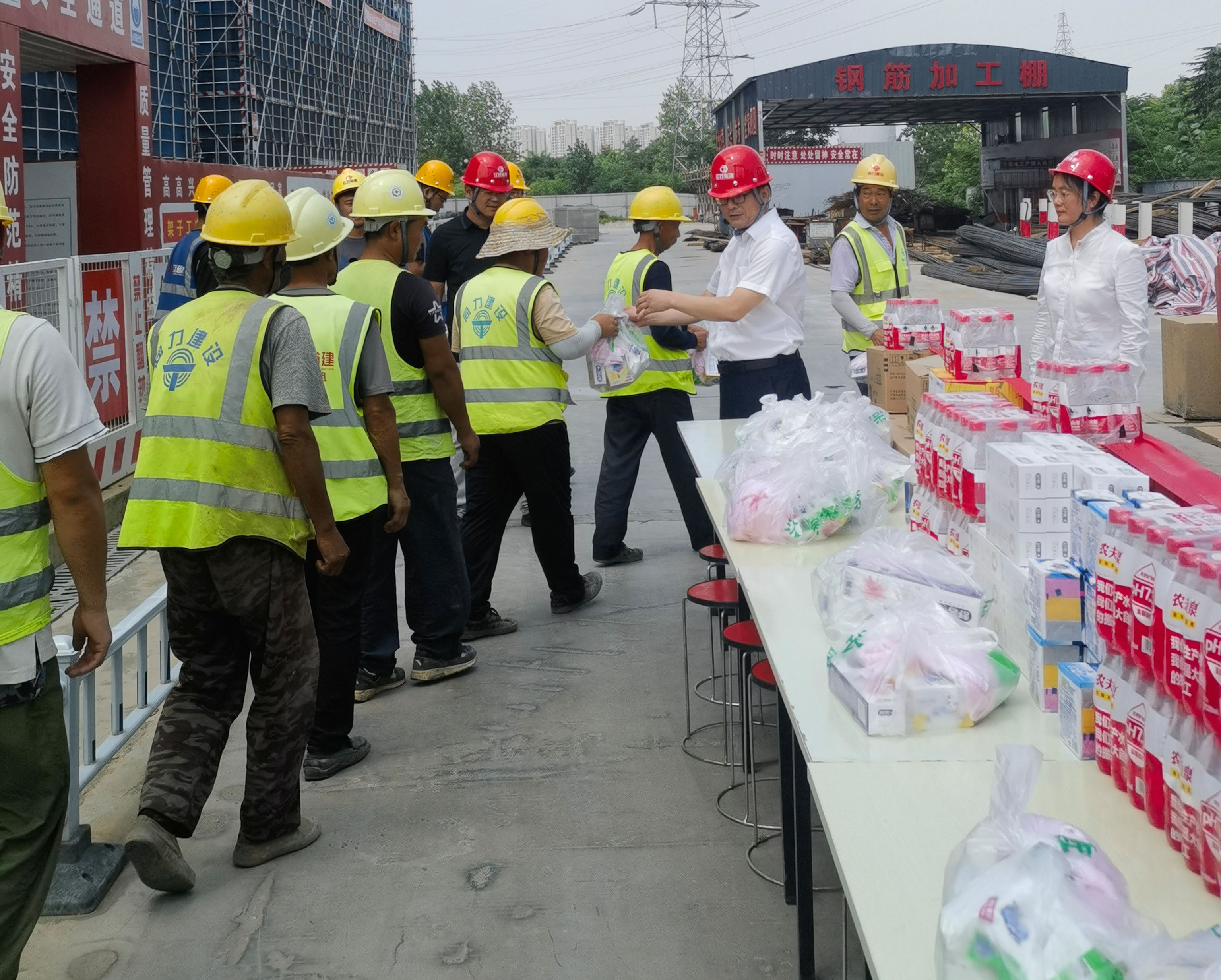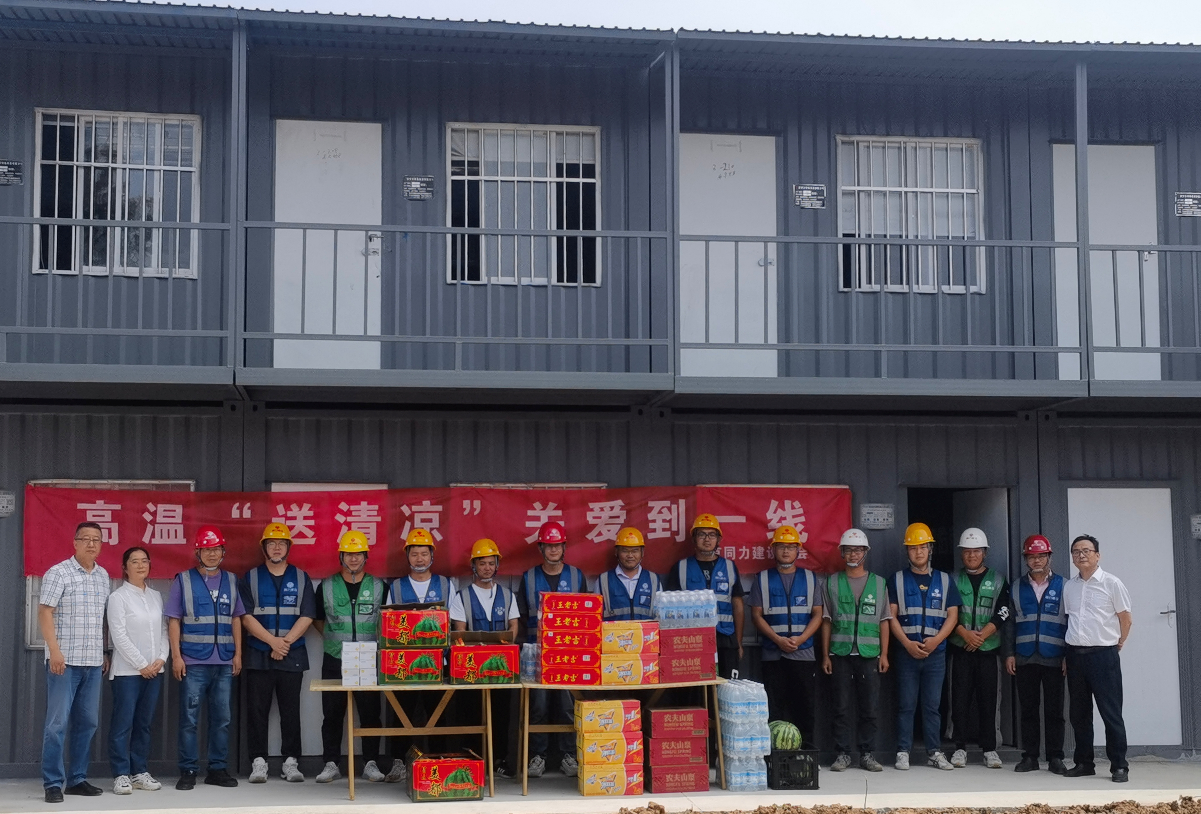 烈日炎炎,心系職工的腳步匆匆,近日,同力建設黨總支書(shū)記兼工會(huì )主席仇偉明帶隊赴項目現場(chǎng)開(kāi)展高溫慰問(wèn)活動(dòng),為奮戰在酷暑中的一線(xiàn)職工送去清涼和關(guān)愛(ài)。同力建設調研員徐慶平、總經(jīng)理助理張穎陪同。